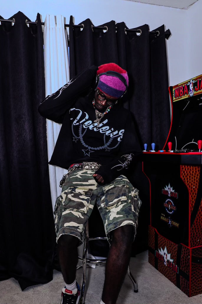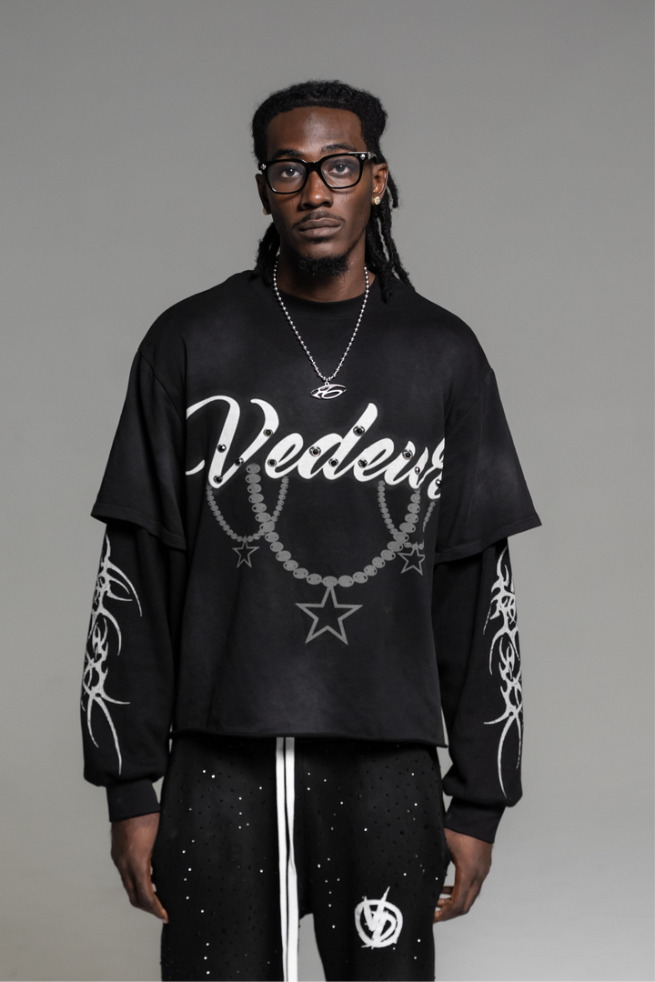 Print: DTG with rivet rhinestone studs